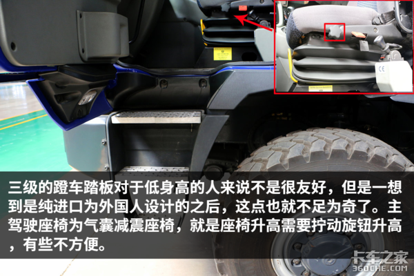 主驾驶座椅为气囊减震座椅,就是座椅升高需要拧动旋钮升高,有些不方便。