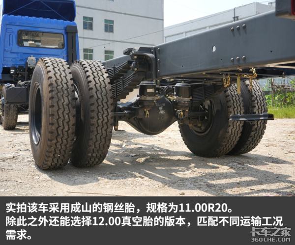 实拍该车因为使用了T280中型车平台,所以上装可以选择6米8或者7米6的栏板式货厢。