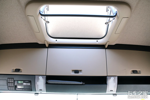 主驾驶抬头位置是车辆行驶记录仪,阅读灯开关、驾驶室外工作灯开关。