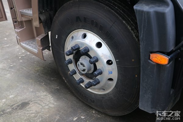 轮胎方面,该车采用东风风神品牌轮胎,规格为12R22.5,并使用美铝铝合金车轮,实现轻量化。另外,车桥也采用免维护设计,方便日后保养。