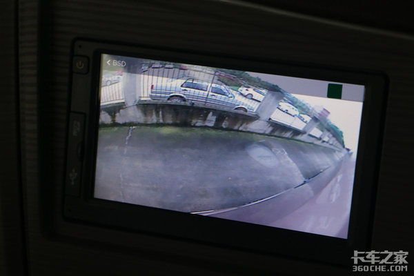 该款车型还配备了右转弯盲区监测,从图中可以看,在右侧后视镜上安装了摄像头,当驾驶员打右转弯指示灯时,中控画面将同步切换至右侧影像,以减少盲区视野,增加行车安全。