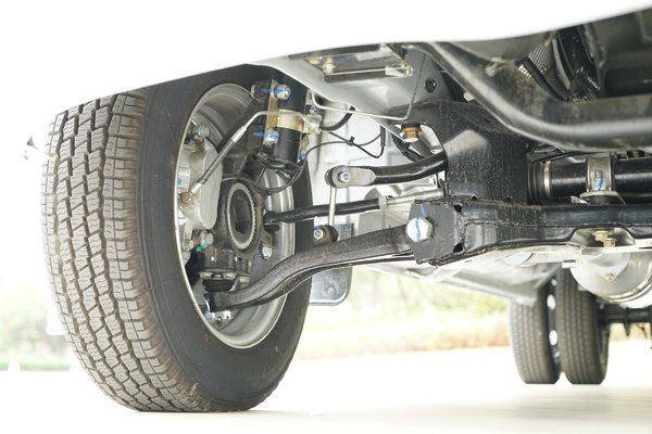 御风V9轴距为3610mm,采用承载式车身,比有大梁的车更加舒服,同时还减轻重量。车辆前轴是传统的麦弗逊独立悬架,带有防倾杆,正常配置。