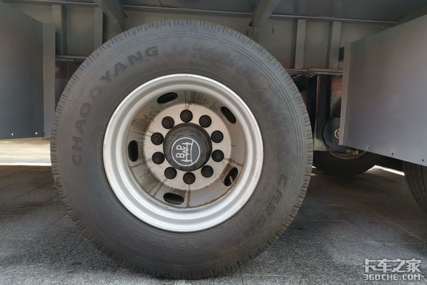 轮胎方面,这台车使用了315/60 R22.5的低扁平比轮胎,低扁平比轮胎能够得到很好的控制车的身高度避免重心过高,也能够带来较低的滚动阻力,节油方面更上一层楼。