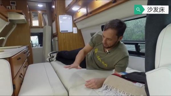 进入到房车内部,这款房车内饰都是采用实木板材制作的家具,而且房车内部的家具柜子特别多。