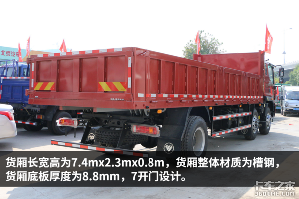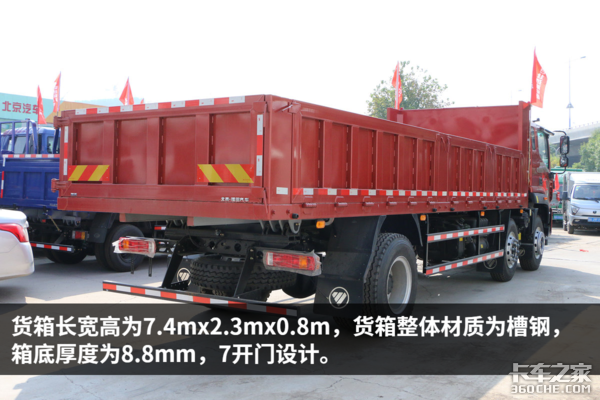 据工作人员介绍,这辆车主要用于建筑原材料运输,包括钢管、木材、砖石等。长货厢和7开门的设计能够让货物装卸更加方便快捷,节省装卸车时间,提高运营效率。
