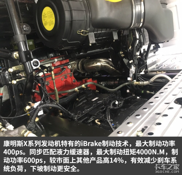 除此之外,福田欧曼EST牵引车采用康明斯X系列发动机特有iBrake制动技术,最大制动功率400ps。同步匹配液力缓速器,最大制动扭矩4000N.M,制动功率600ps,较市面上其他产品高14%,有效减少刹车系统负荷,下坡制动更安全。