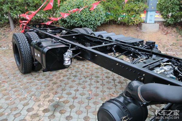 底盘方面,这款车的轴距为3800mm,车架两侧均预留了空位,方便改装厂进行改装。根据不同的上装形式,这款车可以满足9吨及12吨的整车公告。