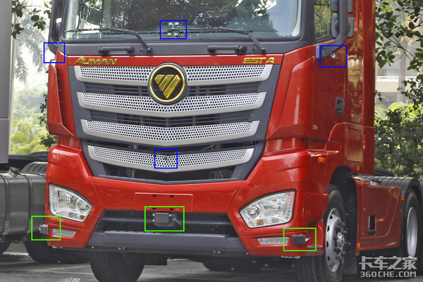 实拍车整体外观设计延续欧曼EST-A家族化设计,不规则五边形蜂窝状进气格栅提高整车档次感,并且让整车看起来威猛霸气,可谓是点睛之笔。整车标识采用暗金色喷涂,提高整车辨识度。