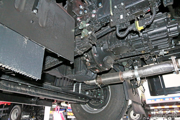 后桥为单级减速桥,速比为4.333,整车鼓式制动,悬架采用多片簧设计,保证承载量。