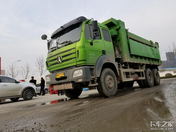 3、虽然都是潍柴WP10.350动力,但是经销商销售的北奔后桥速比更大,起步加速轻轻松松超过德龙M3000,给人感觉动力更强劲;