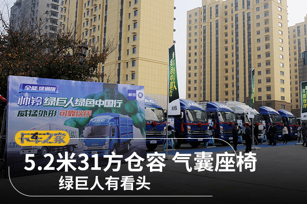 一是仓容大,“绿巨人”货厢容积最大可达31.1立方米,是同类车型的最大之一。