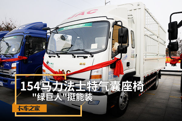 车辆装备了导流罩,能优化气流方向,减少紊乱气流带来的阻力,降低油耗。导流罩上3个硕大的“JAC”字母尤为醒目。