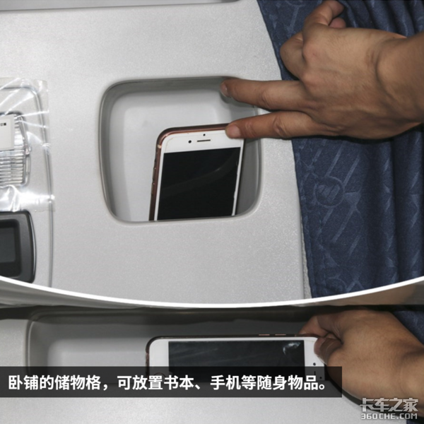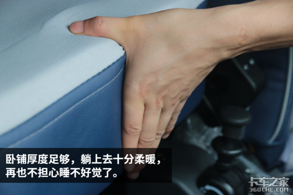 卧铺将直接关系到休息的质量。体验之后,这款卧铺最爽之处不仅是软硬适中的床垫,更爽的是还配备了USB接口。对于开了一天车的司机来说,任何一点减少“麻烦”的设计,都绝对是加分项,躺着也能用手机,何乐而不为呢?