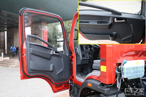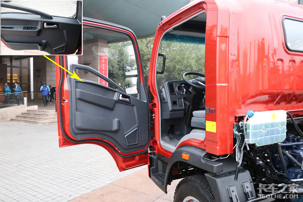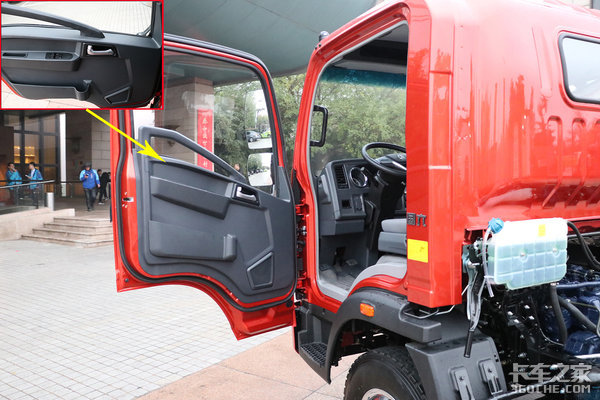 车门虽然为塑料材质,但在细节处做了亮色和熏黑处理,并不会让你感到廉价。车门集成了车窗按键和中控锁。车门处带有一级镂空登车梯,上下车更方便。