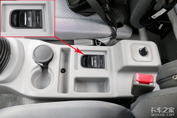 实拍车的制动控制系统为EPB电子驻车和AUTOHOLD,对于轻卡来说就很有B格了。整体操作方式与轿车一样,在拉起电子手刹以后,只要你踩油门起步,车子会自动解除电子手刹。后方黑色按钮为紧急制动,当电子驻车出现故障时,可使用紧急制动。