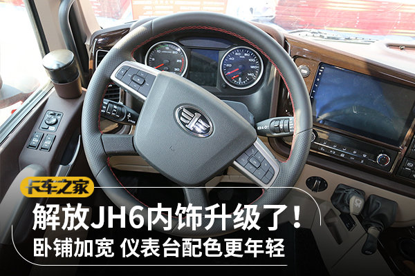 单从外观上来看,这款6×2R后提升驱动形式的JH6智尊版牵引车,和目前在售车型并无太大区别。当然,改变最大的,是它内饰的部分。