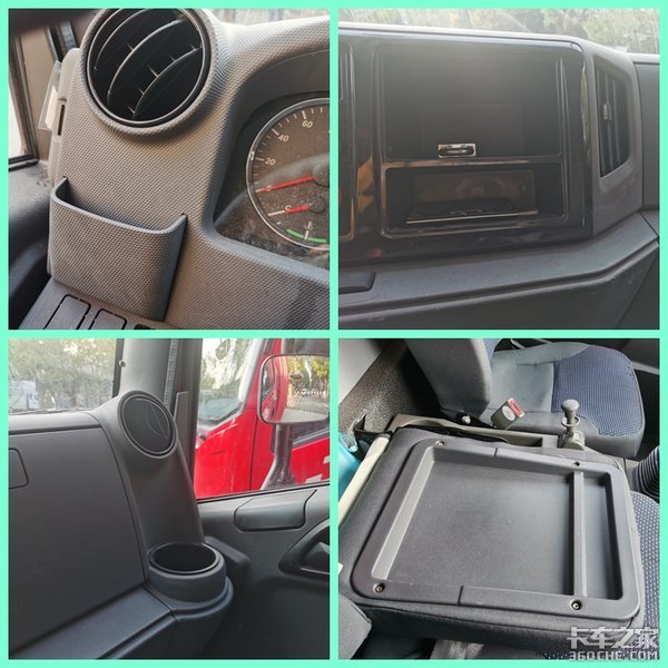 仔细观察该车的储物空间,大大小小合理的分布在驾驶室内,为驾驶员平常储放文件、发票、卡片、杯子等物品提供了极大的便利。