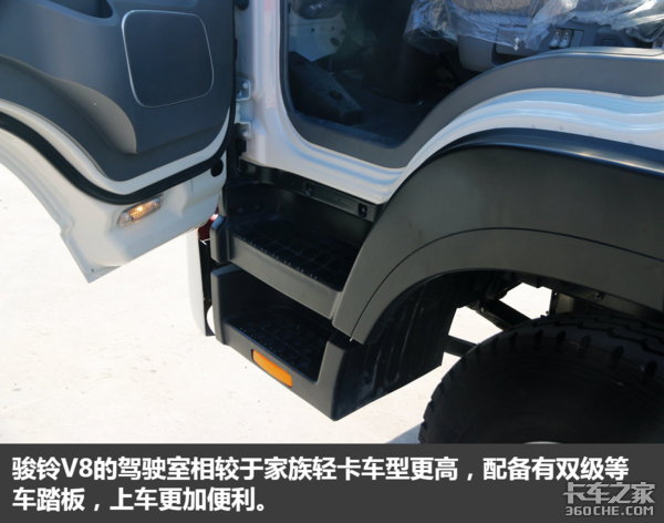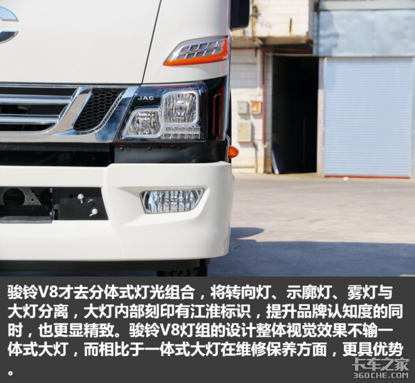 作为公告标载10吨的车型,寻常轻卡搭载的动力总成已经不能够满足骏铃V8的满载工况,为解决满载工况下的动力问题,江淮为骏铃V8搭载的动力总成与中卡车型看齐,更好的平衡了满载下的动力与油耗水平。