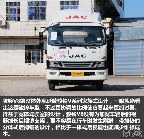 对于卡友而言,选车时车辆的外观设计可能并不是选择卡车的唯一理由,但在配置相近的情况下,优秀的外观设计还是能抓住卡友的心。骏铃V8的外观得益于宽体的驾驶舱设计,更加魁梧,也更加具有进攻性,看上去更加顺眼。