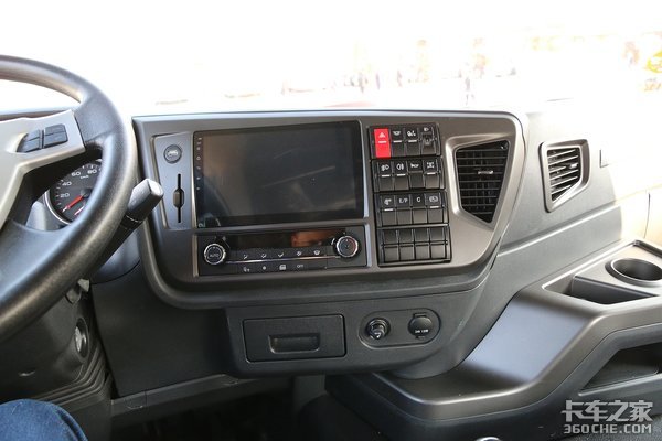 这款JH6驾驶室并不是采用平地板的设计,主副驾之间更换会有一些不方便,驾驶室采用的是两点气囊减震,可以过滤来自地面的颠簸,让驾乘更舒适。另外气囊减震座椅带有通风加热功能,无论是夏天跑南方还是冬天跑北方都会很舒服。