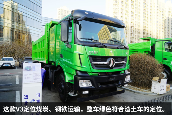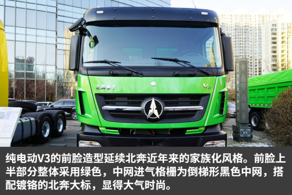 今天我们就来静态介绍一下这款北奔重汽的面向钢铁、煤炭及口岸运输的纯电动自卸车——V3。
