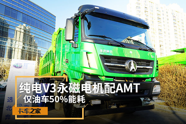 北奔V3纯电动自卸车使用了效率较高的永磁电机,配合AMT变速器能够最大限度地提升车辆动力和降低电能消耗。