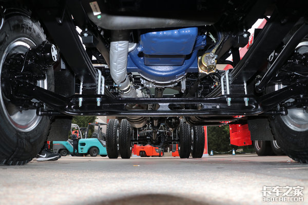 4.2T级三环前桥依然采用了打孔轻量化设计,同时,前桥部分采用盘式刹车,散热效果更佳,制动稳定性也更好。