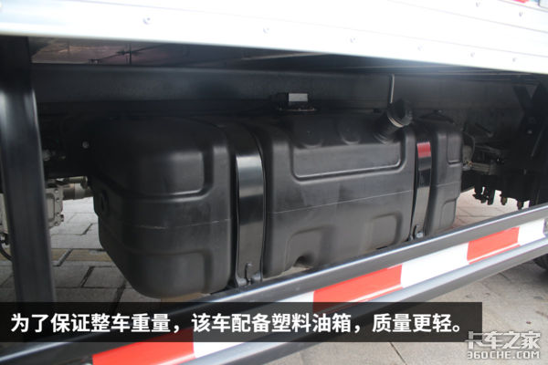 为了保证合规上牌,该车在轻量化方面下了不少功夫。通过使用铝合金变速箱壳体、750L高强度钢车架、塑料油箱以及复合板材质货厢等多个轻量化零部件,实现了降低整车自重目的。