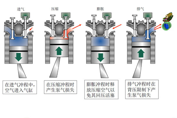 开始之前,我们先重温一下发动机的做功原理。发动机做功由进气—压缩—燃烧膨胀—排气这4个步骤组成的。