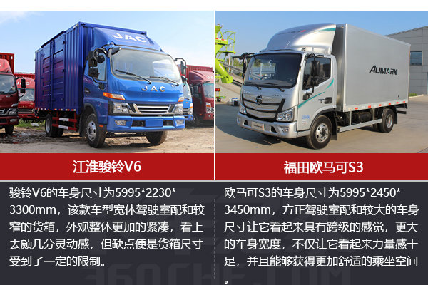 【卡车之家 原创】轻卡在货运市场中,承担着城市货运的重担。随着物流行业的高速发展,轻卡市场也前所未有的火爆。这一市场也成为了各大厂商的竞争焦点,高端轻卡层出不穷。今天我便为大家带来了两款高端轻卡车型的对比,江淮骏铃V6以及福田欧马可S3。