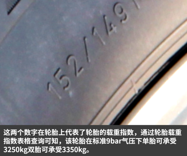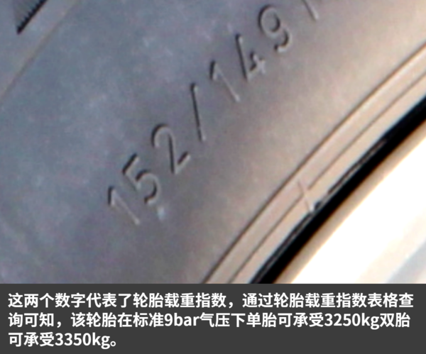 注意:轮胎也同样有寿命,卡友们在买车时一定要留心观察轮胎生产日期,谨防购买到年代久远的轮胎。