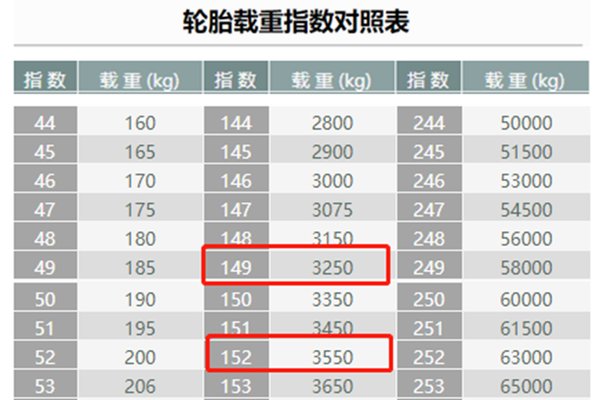 轮胎最大负荷为3550千克