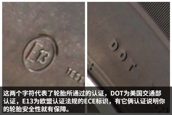 轮胎上DOT E13是认证标准