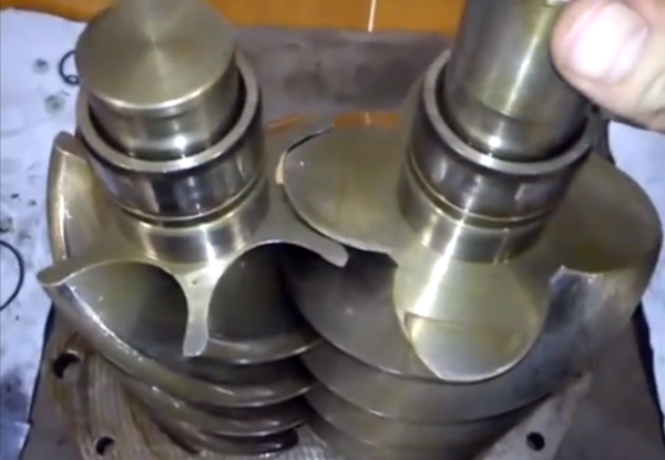 早期的鲁式增压器的转子如同上面动图的转子一样是直齿的,后期经过改良,以斜齿的方式啮合。
