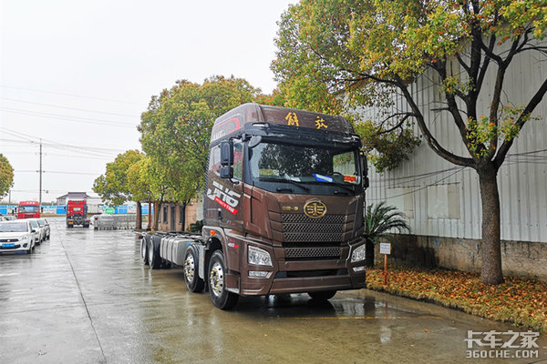 近期在上海地区走访市场的过程中,卡车之家发现了一辆高配的解放JH6 8x4领航版车型,460马力+AMT手自一体变速箱+800L(700L+100L)铝油箱、电控气囊悬挂、JH6的驾驶室平台、全车配威伯科WABCO阀;四季款还有独立空调等配置,不夸张的说,这可以称得上国内最豪华的8x4载货车了。