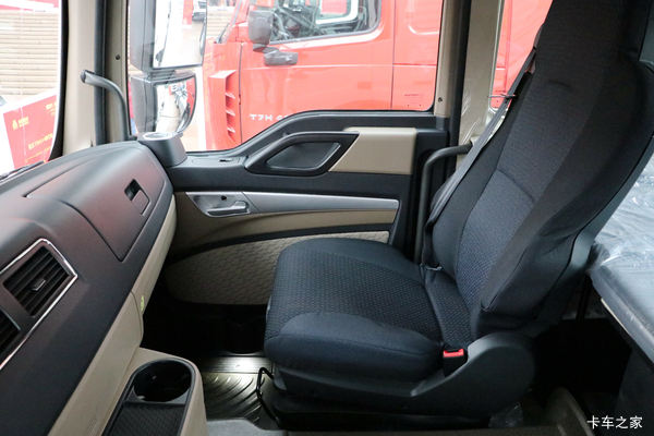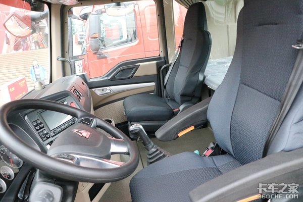 新款豪沃TX主副驾驶座椅均为气囊座椅(带扶手),电动驾驶室举升、四点气囊悬浮等配置,更加人性化。驾驶室的空间也够大,在里面活动自如不是问题。
