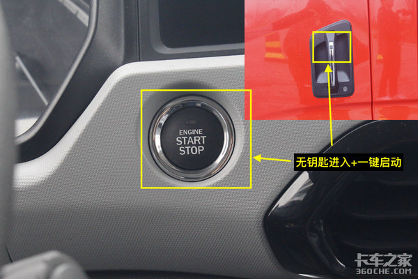 在空调出风口的左侧,我们发现了这个一键启动按钮,配合门把手上的无钥匙进入按钮使用,意味着从你上车到车辆点火再到下车都用不到车钥匙,让它静静地躺在包里就好了。这样的配置对于卡车来说相当奢侈了,很赞。
