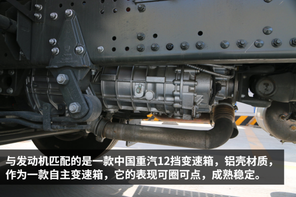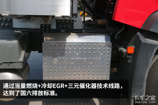 实拍车辆搭载重汽MT13.44-60燃气发动机,最大输出440马力,在1000-1400转时能爆发2100牛米的峰值扭矩,满足国六排放标准。相较于国五1900牛米的扭矩,该款发动机在最大扭矩上提升了200牛米,整体性更强,驾驶也要轻松不少。