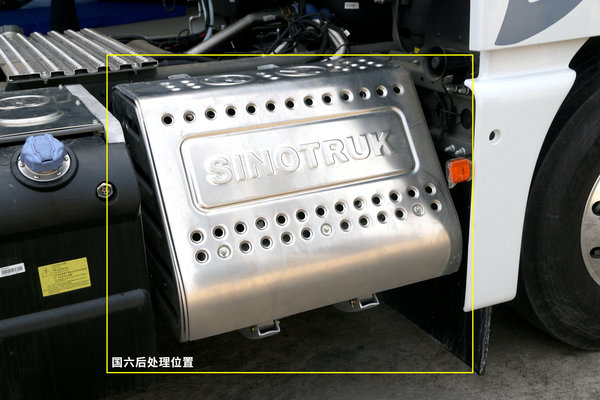 所以国六版在后处理上也有很大区别,首先是位置与国五的有所区别,国五的后处理设计在驾驶室左下侧。