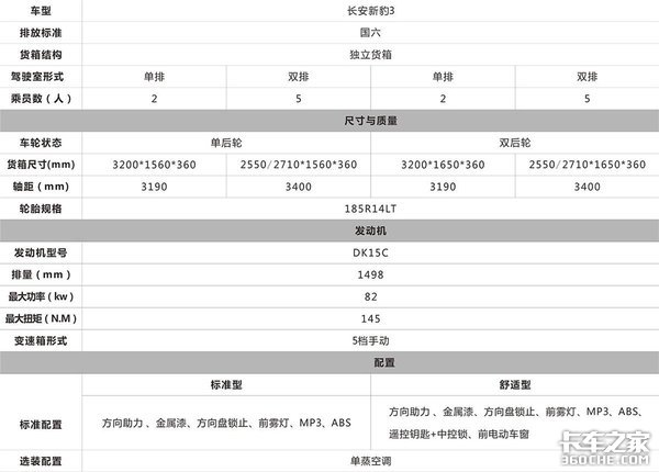 全系采用185R14LT 8PR轮胎,承载能力进一步提升。提供后单胎和后双胎两种版本,产品竞争力大大加强。