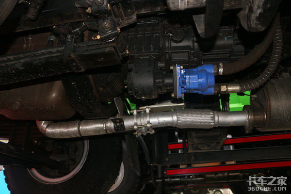 车辆左侧设有一个铝合金油箱、储气罐以及蓄电池,很紧凑的布局。
