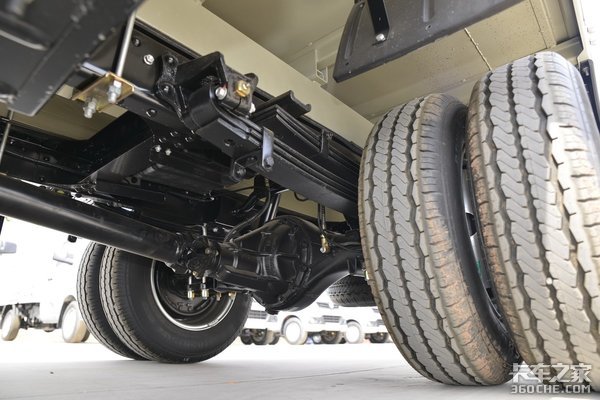 底盘方面,采用3吨级后桥保证承载能力,前3后5板簧悬架,185R15LT后双胎设计,车辆在满足轻量化的同时,又让整车承载得到了大大提升。