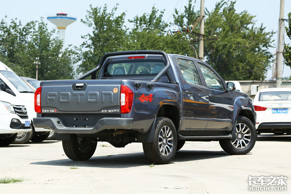 尾箱防滚架非常粗壮,防滚架和货箱挂钩均采用了黑色哑光配色,显得十分粗犷。后尾门上方加入了装饰板,并呈现了凸出字幕LOGO的效果,颇有美式皮卡的风范。