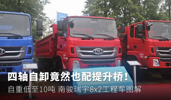 来卡车之家App【卡车之家 原创】此前,南骏瑞捷D50 6x2提升桥自卸受到了卡友们大量关注《自重最轻7.5吨 瑞捷D50小三轴配提升桥》,有人问了,有没有8x2提升桥自卸,今天它来了!