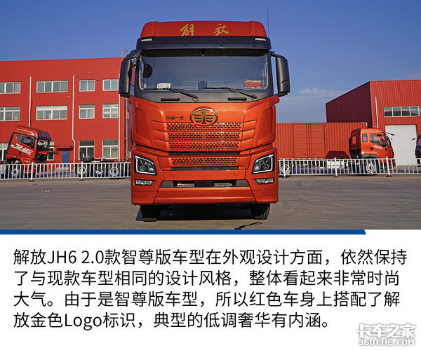 外观点评:虽然解放JH6 2.0款智尊版车型的外观并没有较现款车型有着太多颠覆性的改变,但是在一些细节方面也保持了属于自己的独有风格,例如LED灯组和主被动安全配置的加入,对车辆的豪华感以及安全性都有一定的提升。