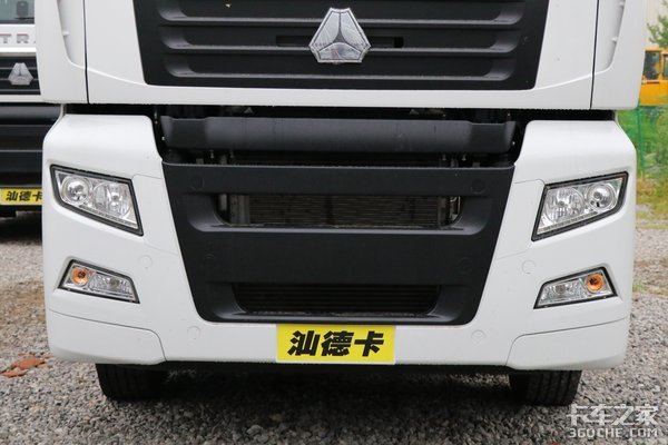 这款4X2的汕德卡G7外形依旧是“重汽味”十足的家族式设计,外形与C7H最大的差异是采用银色的“SITRAK”与重汽车标,但并不影响其与亚光黑的倒梯形营造出的视觉冲击力,经典的车头设计极具辨识度。