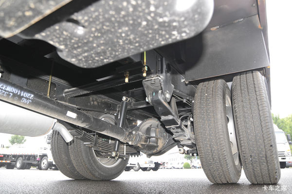 底盘方面,实拍车型采用的是前三后五的钢板弹簧结构,前桥最大允许载荷945KG,后桥最大允许载荷1675KG,底盘配置在微卡中也还可以。