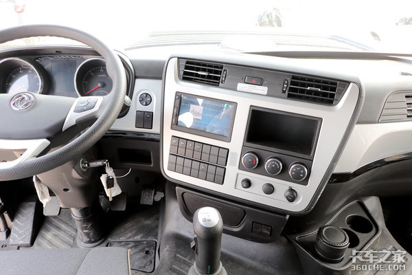 炮筒式仪表盘搭配液晶屏组合,点亮后效果特别满意,可查询车辆里程、气压、轴荷、油耗等数据。
