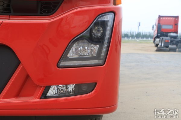 后视镜采用重卡上常见的一体式设计,整洁美观,尺寸也比较合适,能够提供宽阔的后方视野,该车后视镜外壳还采用了与车身一致的红色涂装,增加了整体美观度。并且该车后视镜带有电动调节和电加热功能,实用性同样也很给力。