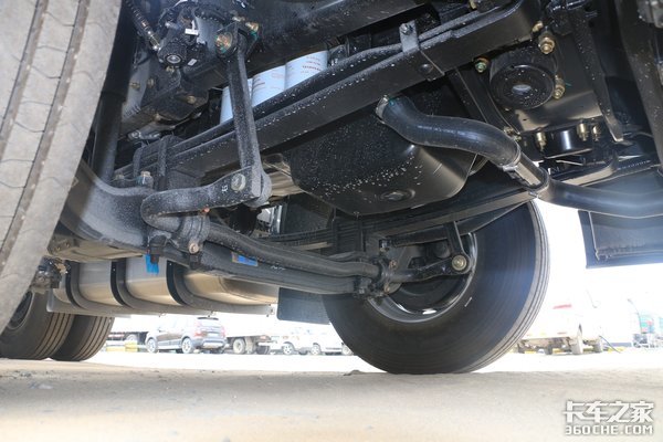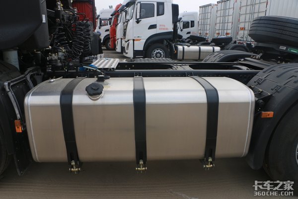 车辆左侧配备了一个800升的铝合油箱,铝合金抗腐蚀强,自重更轻,可起到轻量化作用。